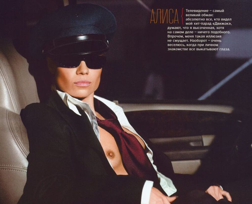Телеведущая Алиса Селезнева известна своим участием в откровенных фотосессиях для различных мужских журналов, таких как «Максим», XXL и «Плейбой». В своих работах она демонстрирует свою фигуру, включая глубокие декольте и провокационные наряды, акцентируя внимание на стройных ногах и подтянутом теле.