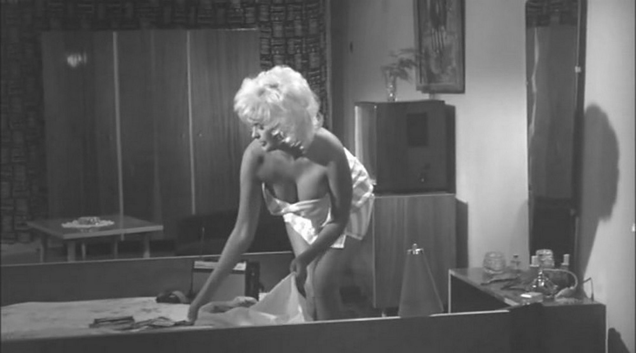 Джейн Мэнсфилд была американской актрисой, которая приобрела популярность как на Бродвее, так и в Голливуде. В 50-е годы она стала одним из секс-символов своего времени, появляясь на обложках журнала Playboy и не стесняясь обнажаться как в кино, так и в фотосессиях. В фильме «Обещания! Обещания!» она продемонстрировала свою фигуру без одежды, а также часто снималась в нижнем белье и откровенных нарядах.