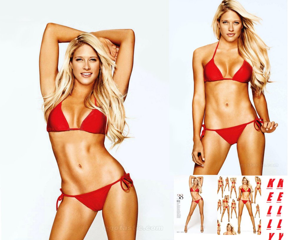 Келли Келли, известная американская модель и рестлерша, привлекла внимание публики в декабрьском номере журнала «Максим» 2011 года. На страницах издания она позировала в купальнике, подчеркивающем ее фигуру. Снимки включали как кадры в бикини, так и более откровенные фотографии с использованием рук для прикрытия наготы. Папарацци также запечатлели знаменитость во время отдыха на пляже, где она демонстрировала свои формы в черном слитом купальнике.