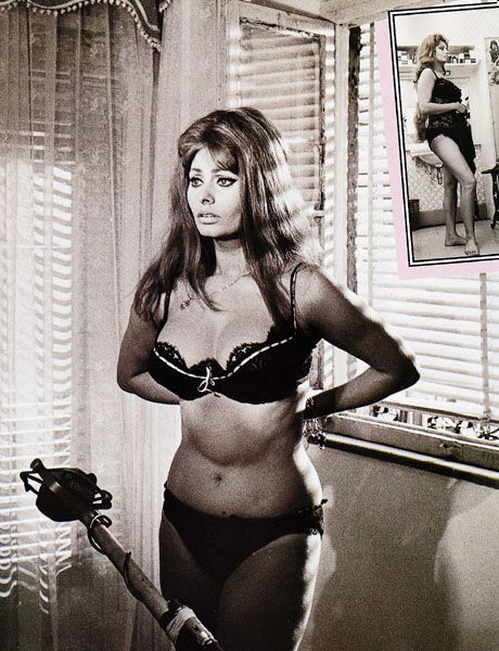 Софи Лорен, родившаяся 20 сентября 1934 года, стала иконой кино и секс-символом 60-х годов. Она снялась в нескольких фильмах с эротическими сценами, среди которых «Две ночи с Клеопатрой» и «Вчера, сегодня, завтра». В молодости актрисе удавалось свободно демонстрировать свою фигуру как на экране, так и в фотографиях для журналов.